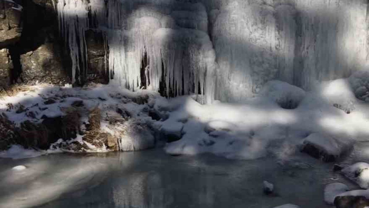 Çanakkale'de Kazdağları'nda-12 derece havada donan şelale görsel oluşturdu. Buz kaplı şelale dron ile görüntülendi.