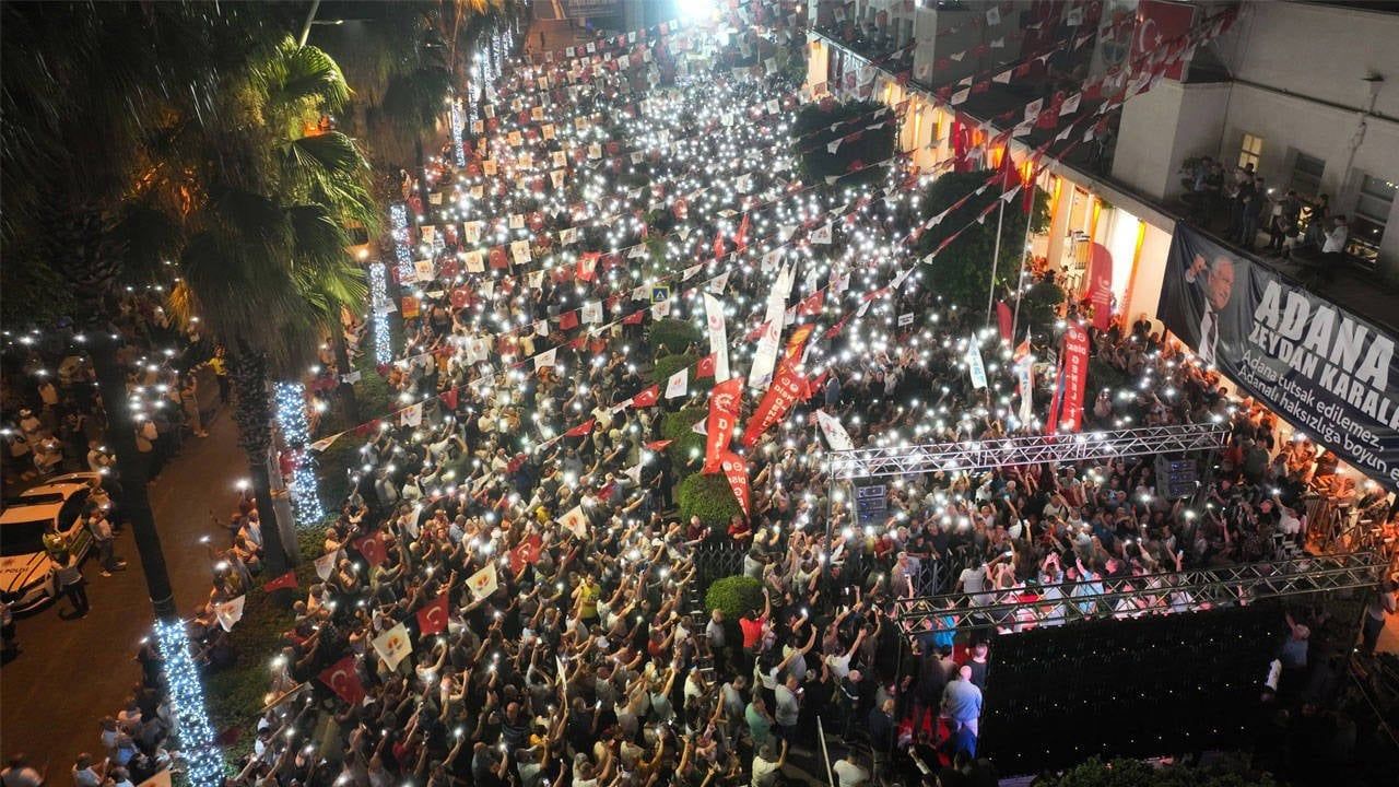 Türkiye Belediyeler Birliği Başkanvekili ve Adana Büyükşehir Belediye Başkanı Zeydan Karalar’a destek amacıyla CHP Adana İl Başkanlığı tarafından "Adana iradesine sahip çıkıyor" mitingi düzenlendi. Mitingin kalabalık olması nedeniyle Atatürk Caddesi trafiğe kapatıldı. Mitinge çevre illerden gelen çok sayıda CHP’li belediye başkanı ve il başkanı da katıldı. CHP Adana İl Başkanı Anıl Tanburoğlu alanda toplanan kalabalığa hitap ederek, "Kıymetli Adanalılar, en öndeki kardeşlerim, en arkadaki kardeşlerim. Dün ben ne demiştim? ‘Zeydan Başkan’ı nezarethanede daha fazla tutmayın, iki katı geliriz’ demiştim. Şimdi görüyorum ki üç katı gelmişsiniz. Sizlerle gurur duyuyoruz, Zeydan Başkan sizlerle gurur duyuyor. Ayaklarınıza sağlık" dedi.