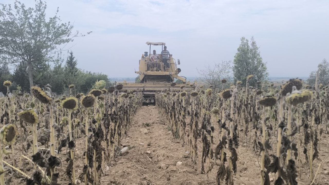 “2025 yılı ayçiçeği hasadına başladık ama durum çok kötü. Kuraklıktan dolayı verim alamıyoruz. Bu sene buğday ektik, tutmadı. Onu bozup ayçiçeği ektik, o da zarar. Kelleler bomboş, üvez gibi. Çiftçi kan ağlıyor. 10 dekar tarlaya 15-20 bin lira masraf ettik. Elde ettiğimiz ürün en fazla 200 kilogram. Kilosu 22 liradan hesaplarsan 4 bin 400 lira eder. Zararın boyutu ortada.”