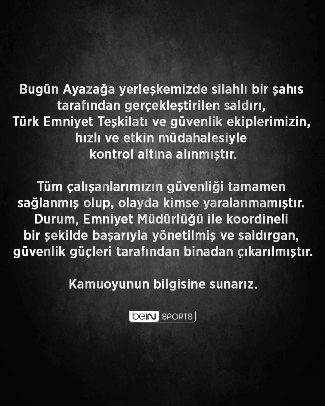 beIN Sports Türkiye, sosyal medya hesabından yaptığı açıklamada, olayın güvenlik güçlerinin hızlı ve etkin müdahalesiyle kontrol altına alındığını duyurdu.