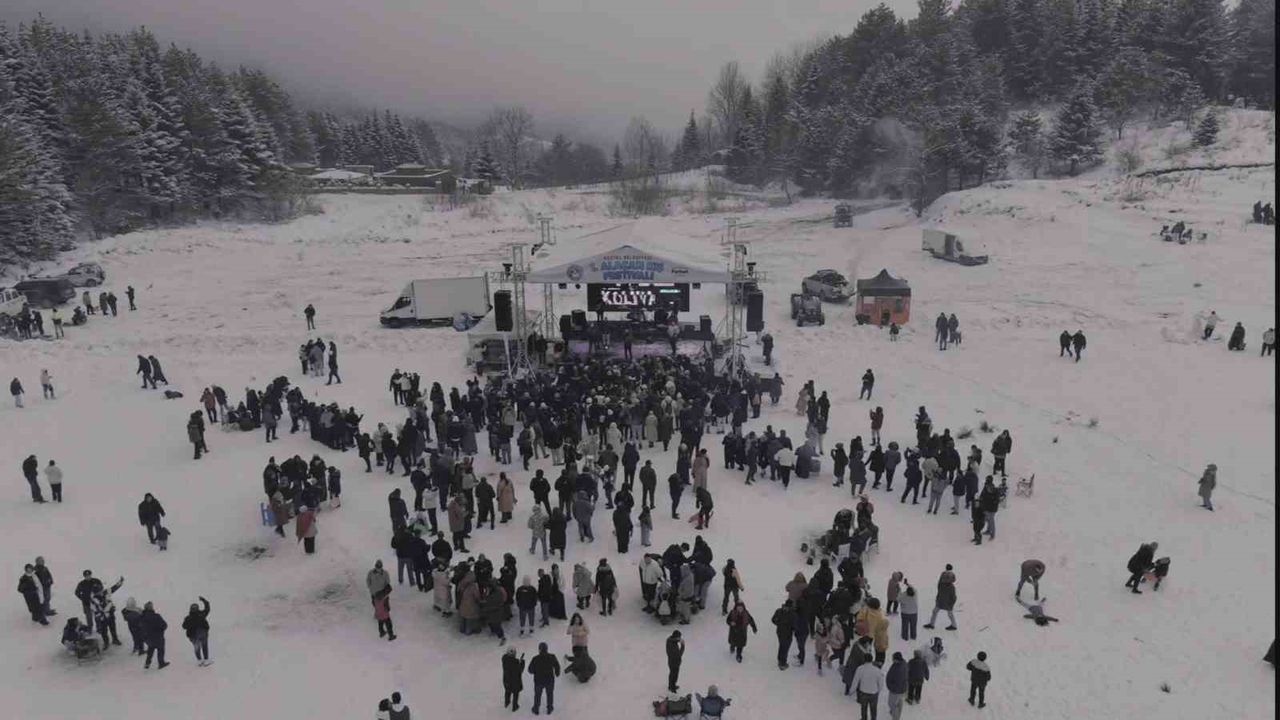 Bursa'da düzenlenen Kış Festivali'ne vatandaşlar yoğun katılım sağlarken, köy yollarının dar olması ve araç yoğunluğu nedeniyle trafik adeta felç oldu.