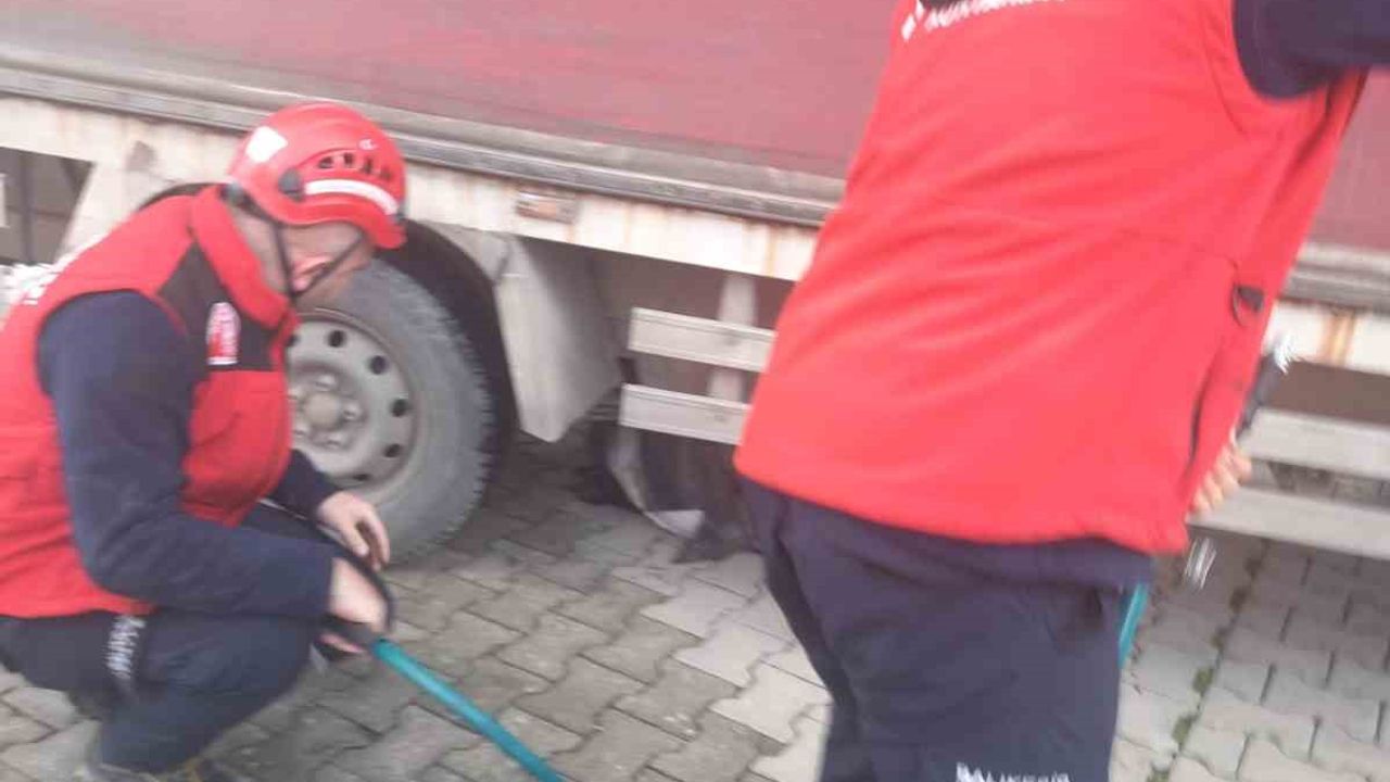 Balıkesir'in Edremit ilçesinde geri manevra yapan kamyonun altında kalan vatandaş, itfaiye ekiplerinin zamanında müdahalesiyle kurtarıldı.