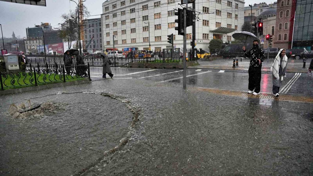 Megakent İstanbul'da bir yandan fırtına diğer yandan şiddetli yağmur etkili oluyor. Bu sırada dışarıda olan vatandaşlar ise zor anlar yaşıyor. Şiddetli yağmur nedeniyle yollar göle dönerken, Eminönü'nü ise su bastı. Sürücülerin ise güçlükle ilerlediği görüldü. Göle dönen yolda bir rögar kapağının ise suyun şiddetiyle yerinden çıktığı görüldü. Yolun karşısına geçmeye çalışan vatandaşlar ise ıslanmamak için büyük çaba sarf etti.