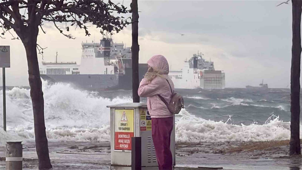 İstanbul'da etkili olan lodos, hayatı olumsuz etkiledi. Yenikapı'da şiddetli lodos nedeniyle dev dalgalar kıyıyı dövdü. Dalgaların boyu büyüyünce adeta deniz ile kara birleşti. O anlarda sahilde fotoğraf çekmeye çalışanlar zor anlar yaşadı. Deniz suyunun içerisinde kalan bir kadının çabası kameraya yansıdı.
