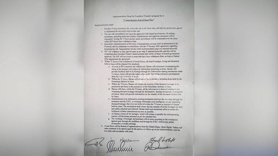 Mısır’ın ev sahipliğinde, Türkiye ve Katar’ın arabuluculuğunda yürütülen müzakerelerin ardından varılan anlaşma kapsamında İsrail ve Hamas, kalıcı ateşkesi ve esir değişimini içeren mutabakat metnini imzaladı.