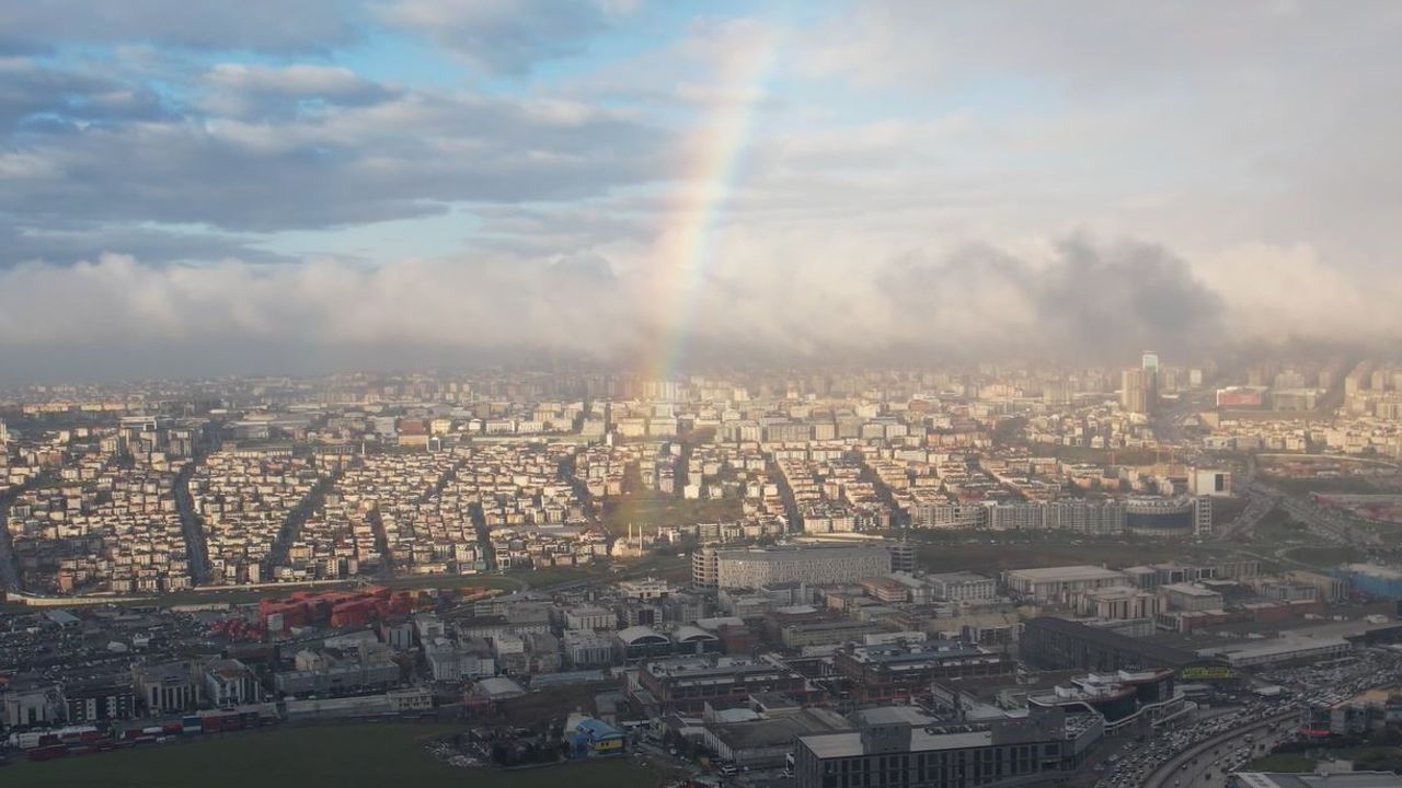 Kent genelinde sabah saatlerinde etkili olan yağmur sonrasında İstanbul Beylikdüzü ve çevresinde gökkuşağa sürprizi yaşandı. Gökyüzünde görsel şölen oluşturan anlar dron ile havadan görüntülendi. Kısa süreli yaşanan gökkuşağı olayı, görenleri kendine hayran bıraktı.