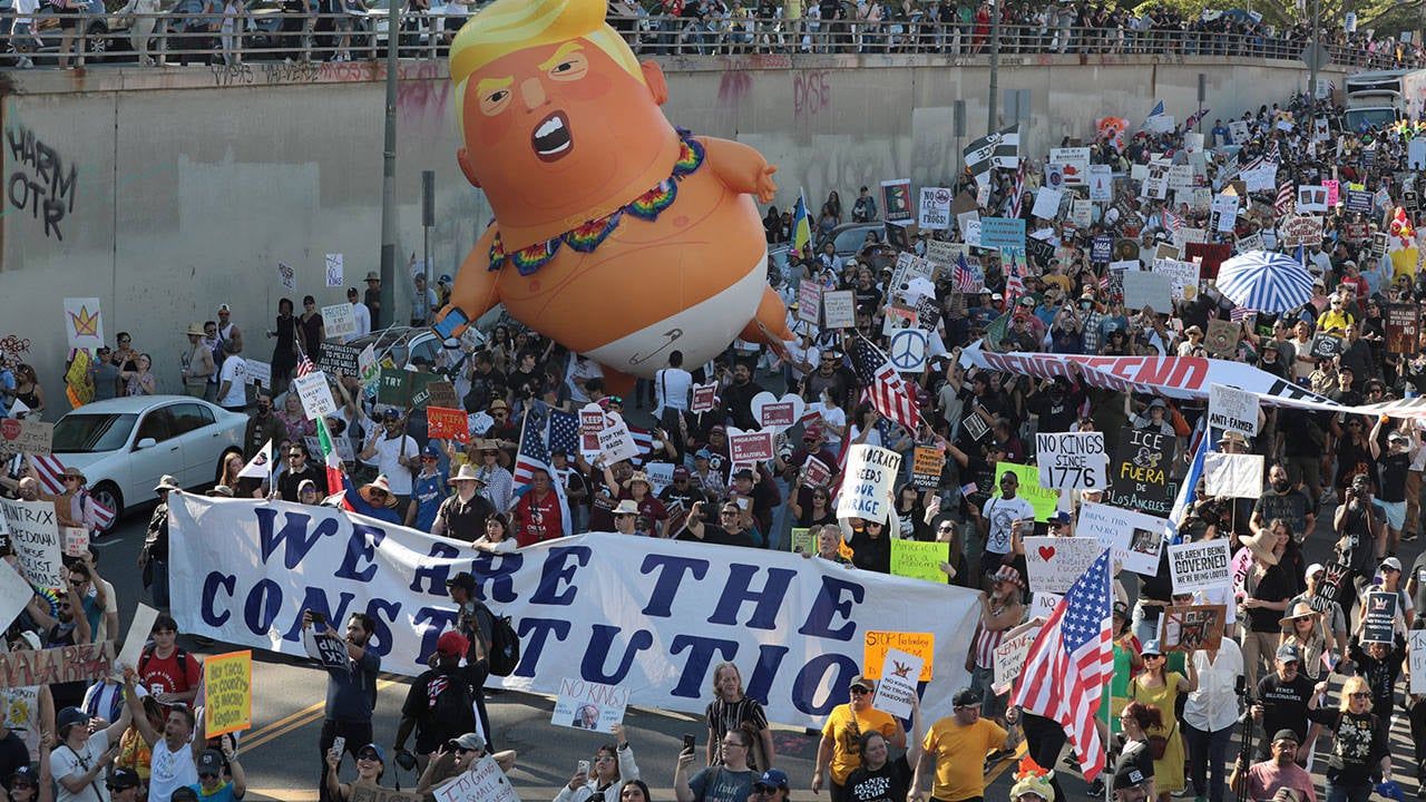 ABD genelinde milyonlarca kişi, Başkan Donald Trump’ın “otoriterleşen” yönetim anlayışına karşı “Krallara Hayır” (No Kings) protestolarında bir araya geldi. Washington’dan Los Angeles’a, New York’tan Chicago’ya kadar 2 bin 500’den fazla noktada düzenlenen gösterilerde, Trump’ın askeri politikaları ve sivil hakları kısıtlayan uygulamaları protesto edildi.