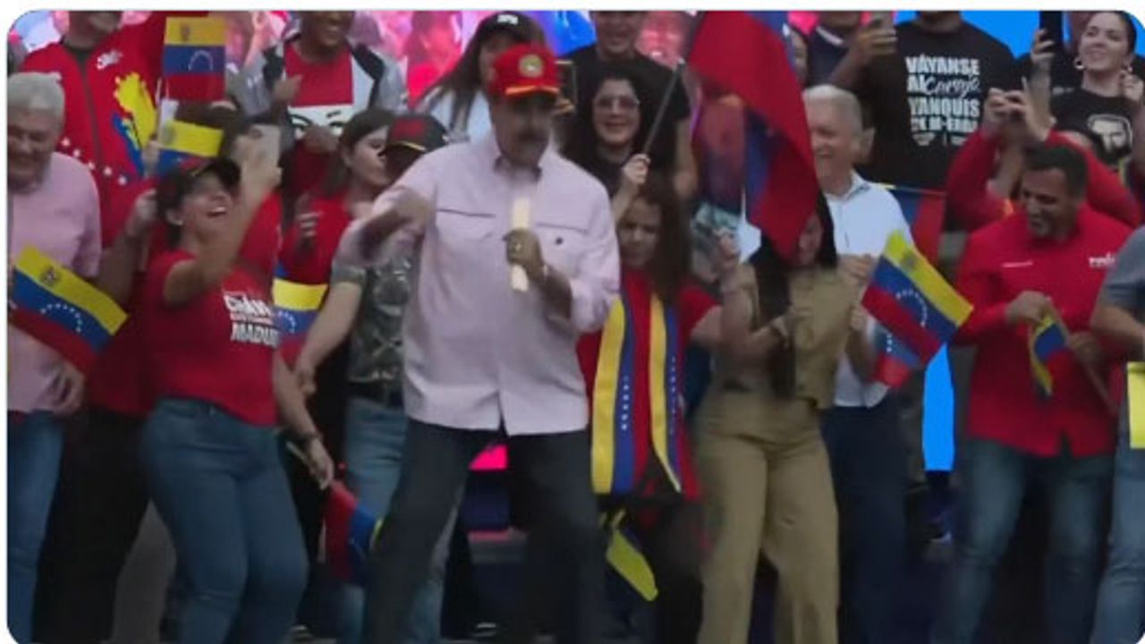 Venezuela Devlet Başkanı Nicolas Maduro, partisinin organize ettiği bir miting sırasında konuşmasının remiks edilmiş versiyonuyla dans ederek ABD’ye "barış" çağrısı yaptı.