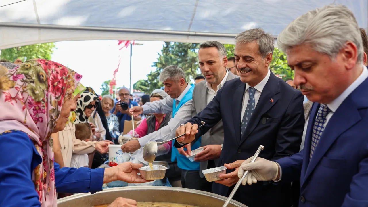 Sakarya Büyükşehir Belediye Başkanı Yusuf Alemdar’da, AKM önünde açılan stantta Vali Rahmi Doğan, AK Parti İl Başkanı Yunus Tever ve Adapazarı İlçe Başkanı Samet Çağlayan ile birlikte vatandaşlara aşure ikramında bulundu.