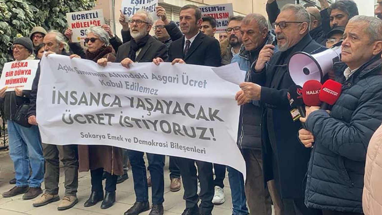Sakarya Ekem ve Demokrasi Bileşenleri'nin 3 Ocak Cumartesi günü Adapazarı'nda düzenleyeceği "Geçinemiyoruz" yürüyüşüne çağrı amacıyla, Eğitim-Sen binası önünde düzenlenen toplantıda konuşan Yücel Kaçar, açıklanan asgari ücretin., 'TÜİK'in sahte verilerininin' bile altında kaldığını söyledi.