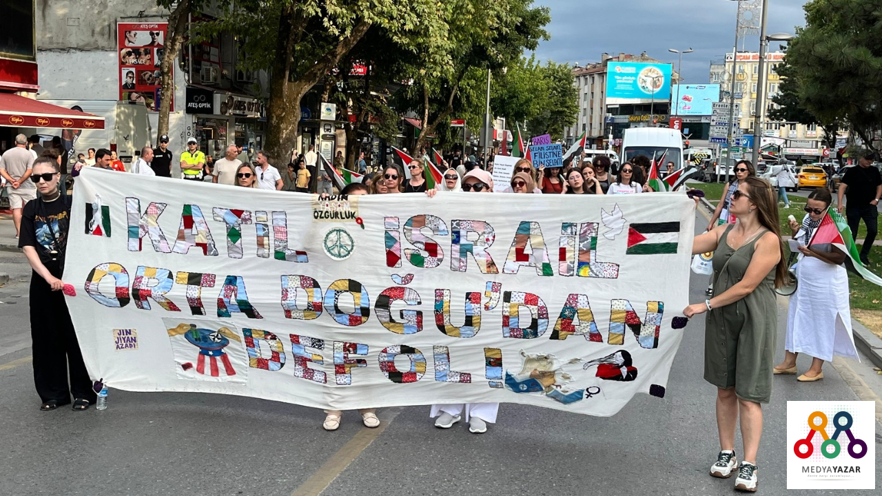 Sakarya Kadın Platformu, İsrail’in Filistin’de sürdürdüğü katliamları ve emperyalist savaş politikalarını protesto etmek için 11 Temmuz Cuma günü bir yürüyüş ve basın açıklaması gerçekleştirdi. “SAVAŞA VE SÖMÜRÜYE KARŞI, KADINLARIN DİRENİŞİYLE BARIŞI ÖRÜYORUZ” sloganıyla yapılan çağrı, yüzlerce kadının katılımıyla Yeni Cami önünden Demokrasi Meydanı’na yürüyüşle başladı.