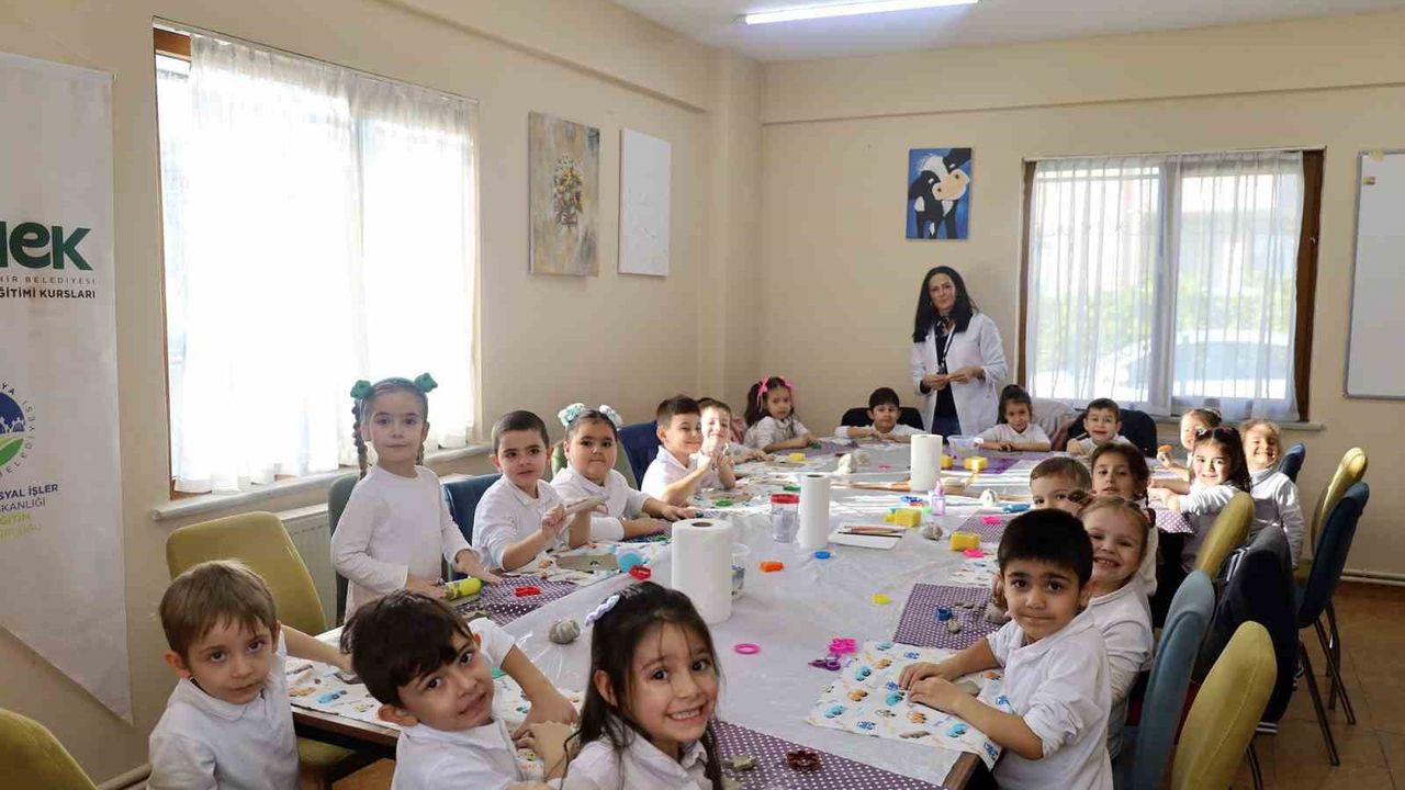 Güneşler SAMEK'in konuğu olan Güneşler Anaokulu öğrencileri ise seramik atölyesinde hünerlerini sergiledi. Kil çamuruyla tanışan minikler, hayal güçlerini kullanarak kaplumbağa figürleri ve bardaklar tasarladı.