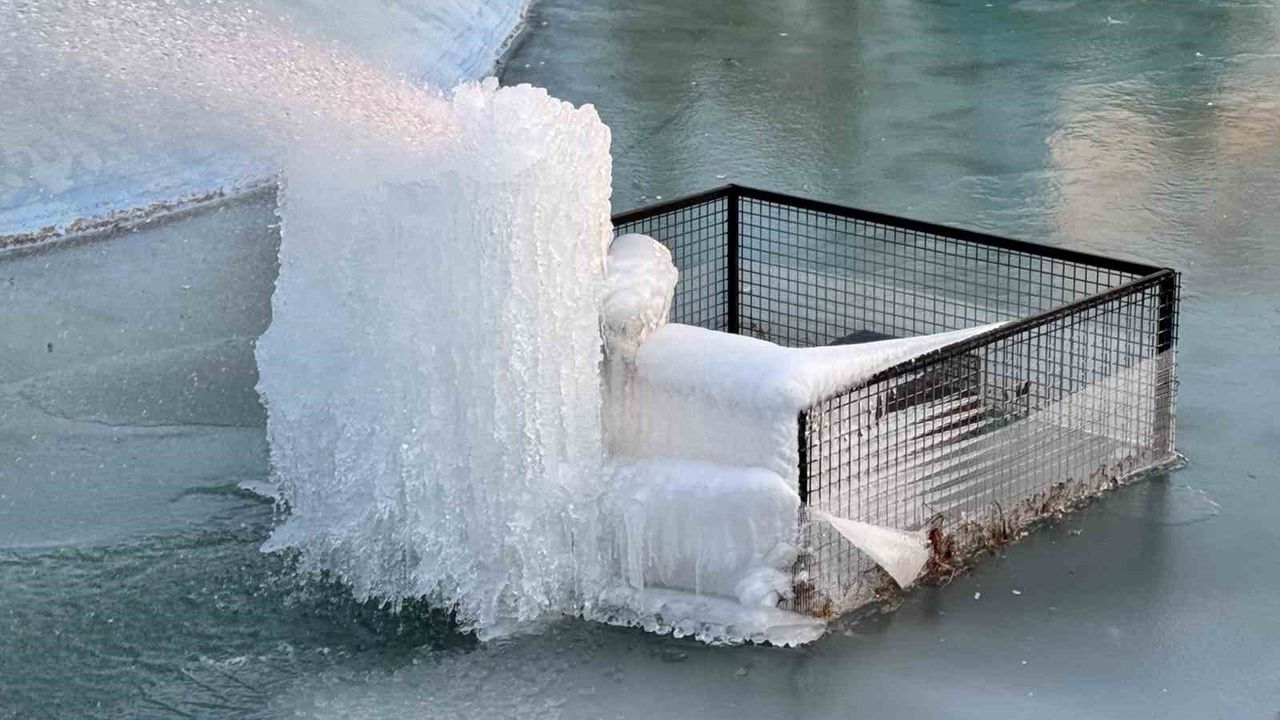 Barış Parkı içerisinde bulunan suni göletteki süs havuzları, dondurucu gece ayazına teslim oldu. Havuzdaki fıskiyelerden akan sular, havada donarak dev buz sarkıtları oluşturdu. Sabah saatlerinde parka gelen vatandaşlar, suyun akarken donmasıyla oluşan ve adeta bir sanat eserini andıran buz kütlelerini hayretle izledi. Sokağa çıkmak zorunda kalan az sayıdaki vatandaşın ise kat kat giyinerek soğuktan korunmaya çalıştığı görüldü.