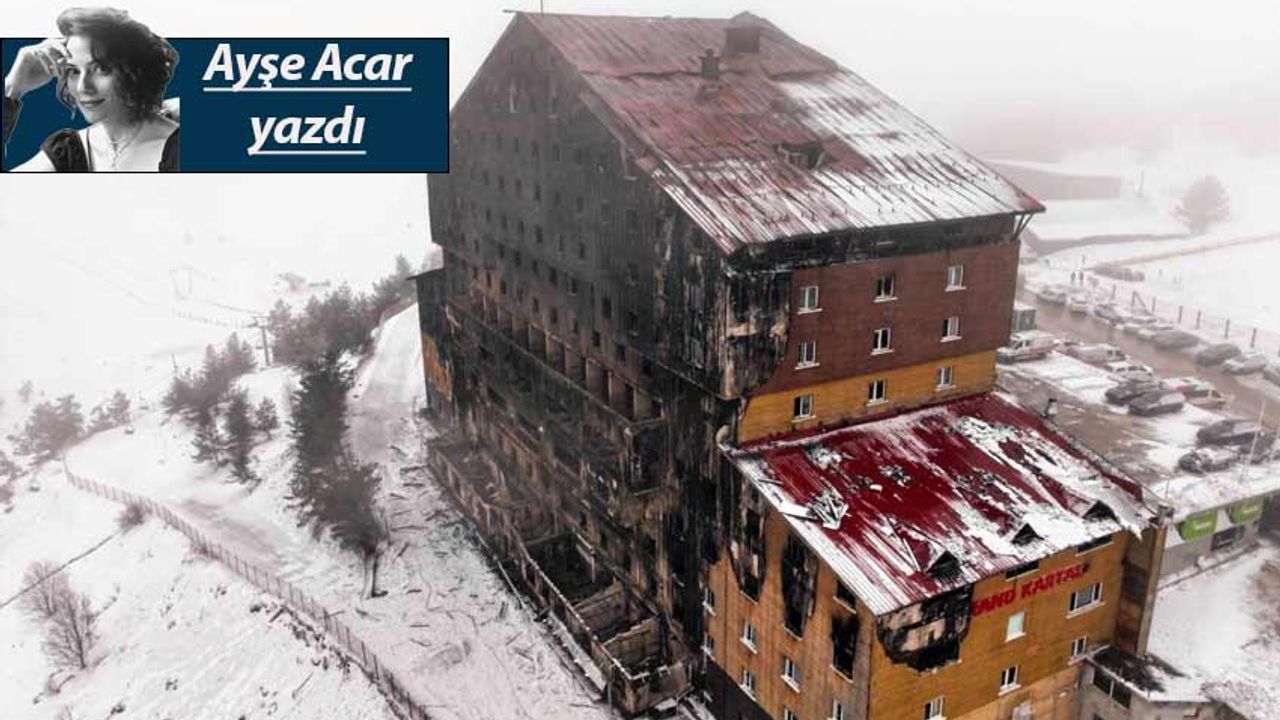 Yazı geçirmek ve ruhumu dinlendirmek için bulunduğum adada internet çok yavaş. Neredeyse 80’lerdeki gibi modem üzerinden bağlanacağız. İki gün internet tamamen gidiyor. O iki gün haber takip edemediğim içinelimi ayağım birbirine dolanıyor. Üstelik o iki gün, Türkiye’nin en büyük toplu can kayıplarından biri olan, 78 kişinin hayatını kaybettiği, 133 kişinin yaralandığı ve ortalama 15 gün sürmesi beklenen Grand Kartal Otel Yangını’nın davasının ilk iki gününe denk geliyor.