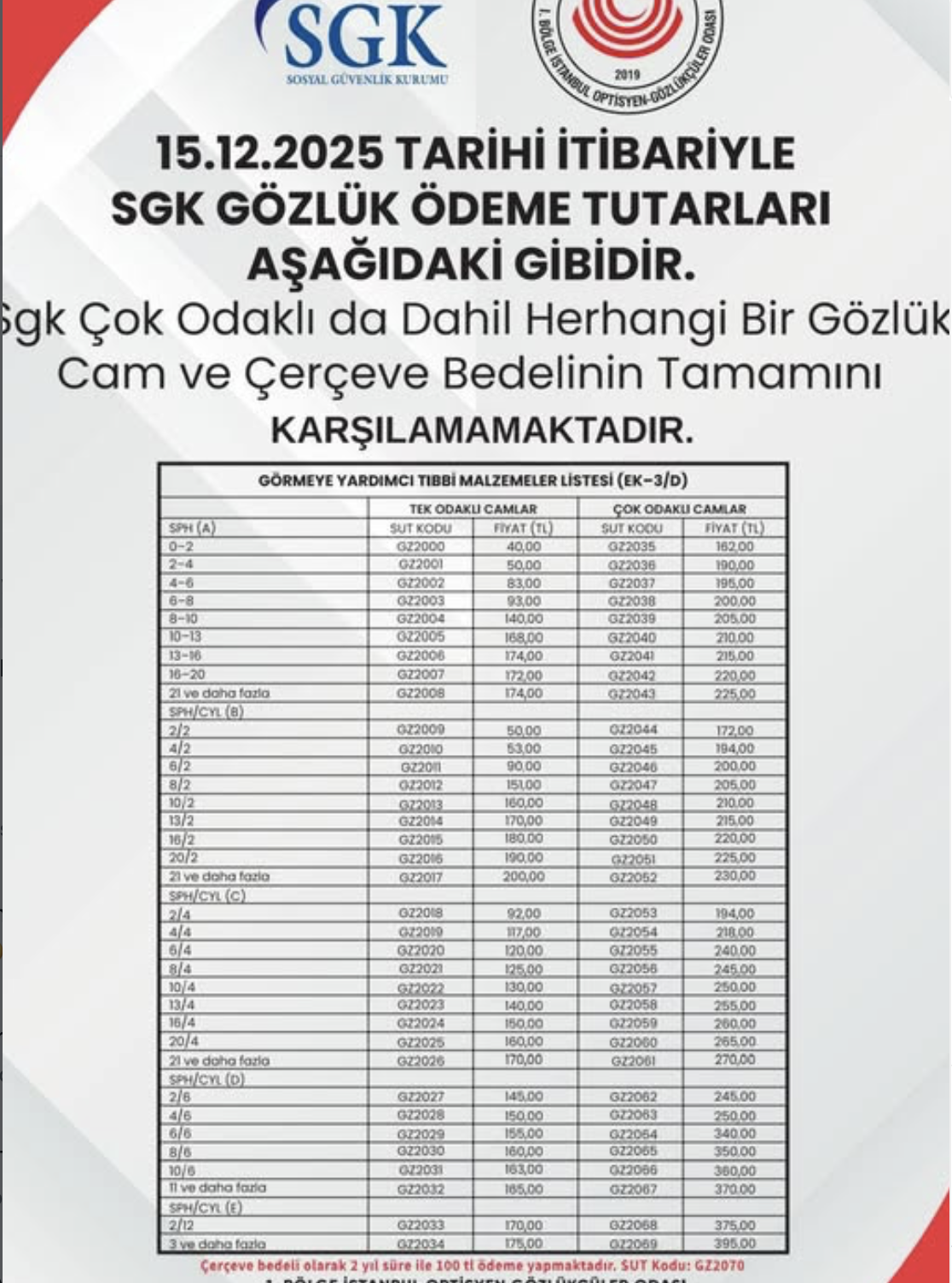 SGK'nın 10 Aralık 2025'te yayımladığı, Sağlık Uygulama Tebliği’nin yanlış yorumlanması sonucu bir anda yayılan 'çok odaklı gözlüklerin parasını SGK'nın karşılayacağı' yönündeki haberin doğru olmadığı ve hastaların bu haberi referans göstermesi nedeniyle gözlükçülerin zor durumda kaldığı bildirildi