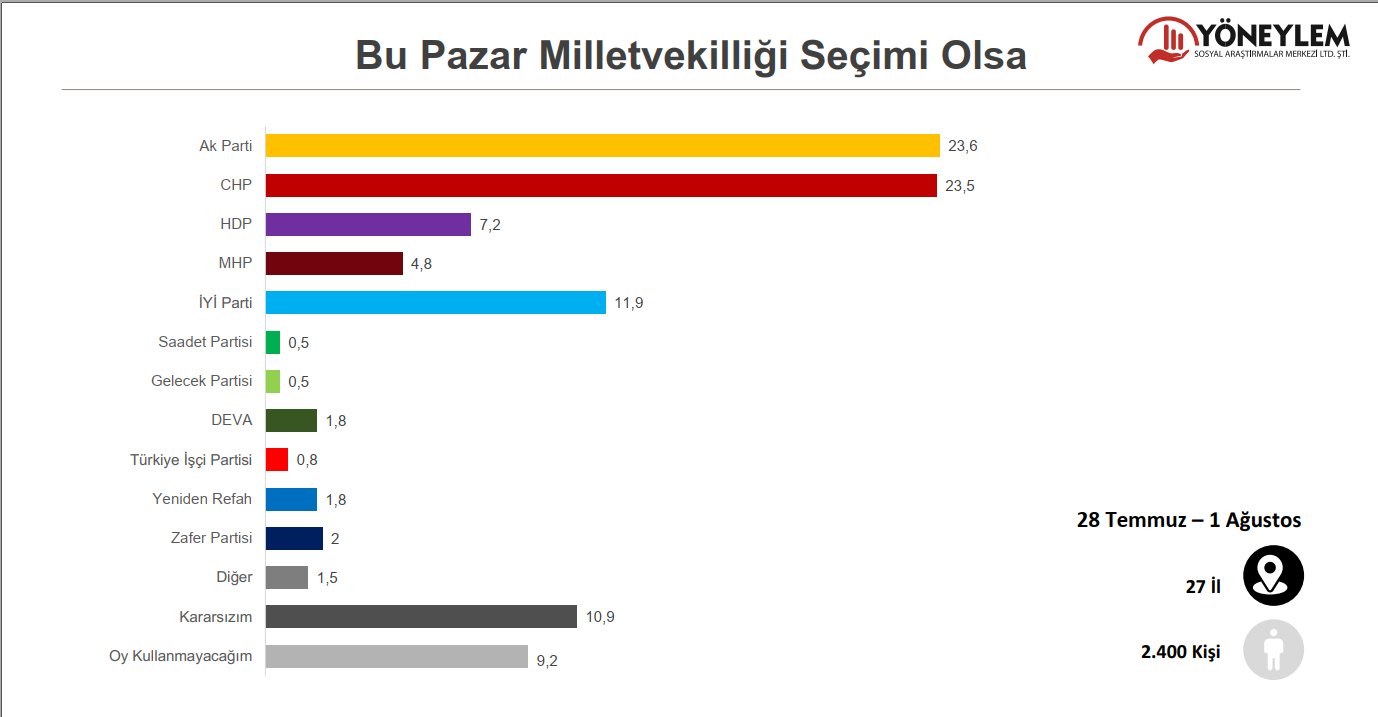Yöneylem Sosyal Araştırma Merkezi Araştırmalardan Sorumlu Genel Koordinatörü, Siyaset Bilimci Doç. Dr. Derya Kömürcü, 28 Temmuz - 1 Ağustos tarihleri aasında gerçekleştirilen seçmenlerin Milletvekili Seçimi parti tehcihleri araştırması sonuçlarını paylaştı.